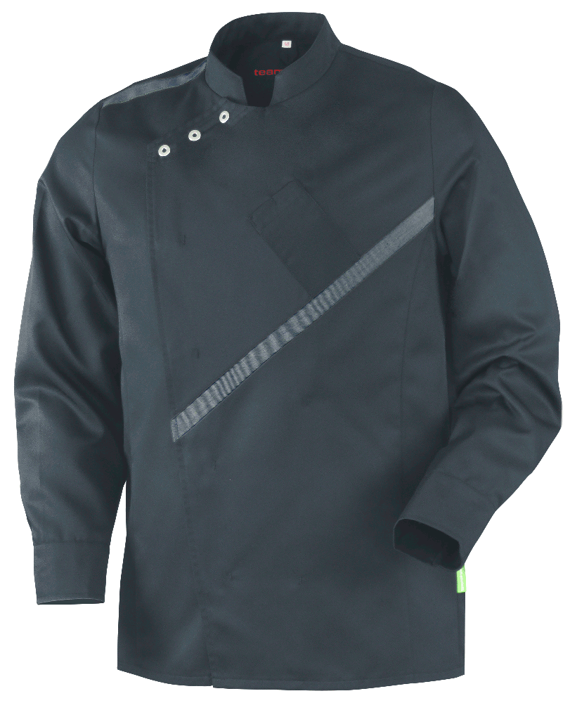 Col montant; Boutons pression sous patte; 1 poche pour crayon avec compartiment; Manches avec inserts en stretch pour la liberté de mouvement et la ventilation