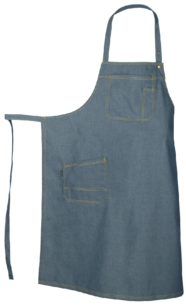 Taille L x H : 76 x 99 cm; Ceinture à nouer: 102 cm; 1 poche bavette + poche pour crayon; 1 poche latérale à droite; Sangle de cou réglable avec boutons pression