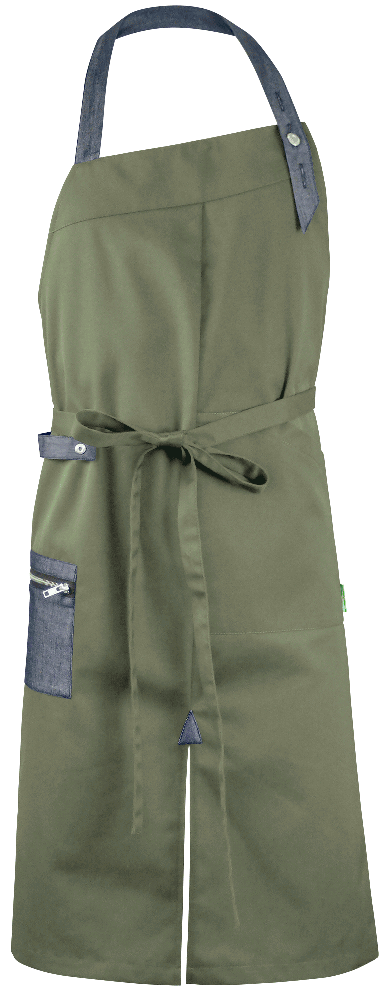 L x H : 100 x 96 cm; Ceinture à nouer: 120 cm; Sangle de cou réglable avec bouton jeans; 1 poche latérale à gauche avec compartiment stylo; 1 poche latérale à droite avec fermeture éclair; Boucle pour la serviette; Avec fente sur la partie avant