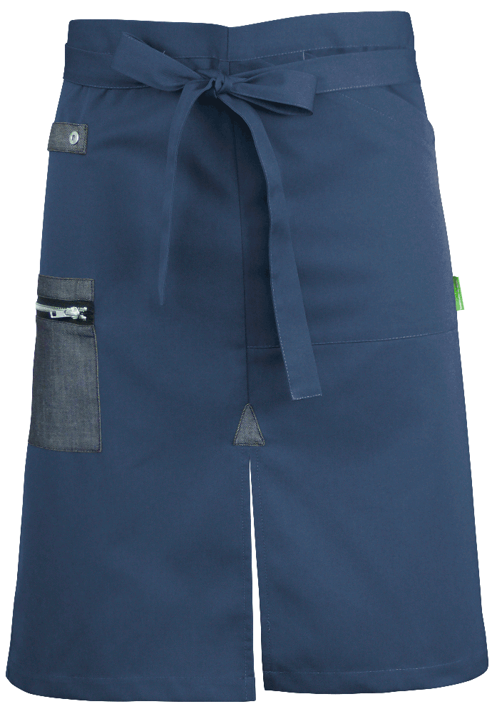 L x H : 100 x 60 cm; Ceinture à nouer: 120 cm; 1 poche latérale à gauche avec compartiment stylo; 1 poche latérale à droite avec fermeture éclair; Boucle pour la serviette; Avec fente sur la partie avant