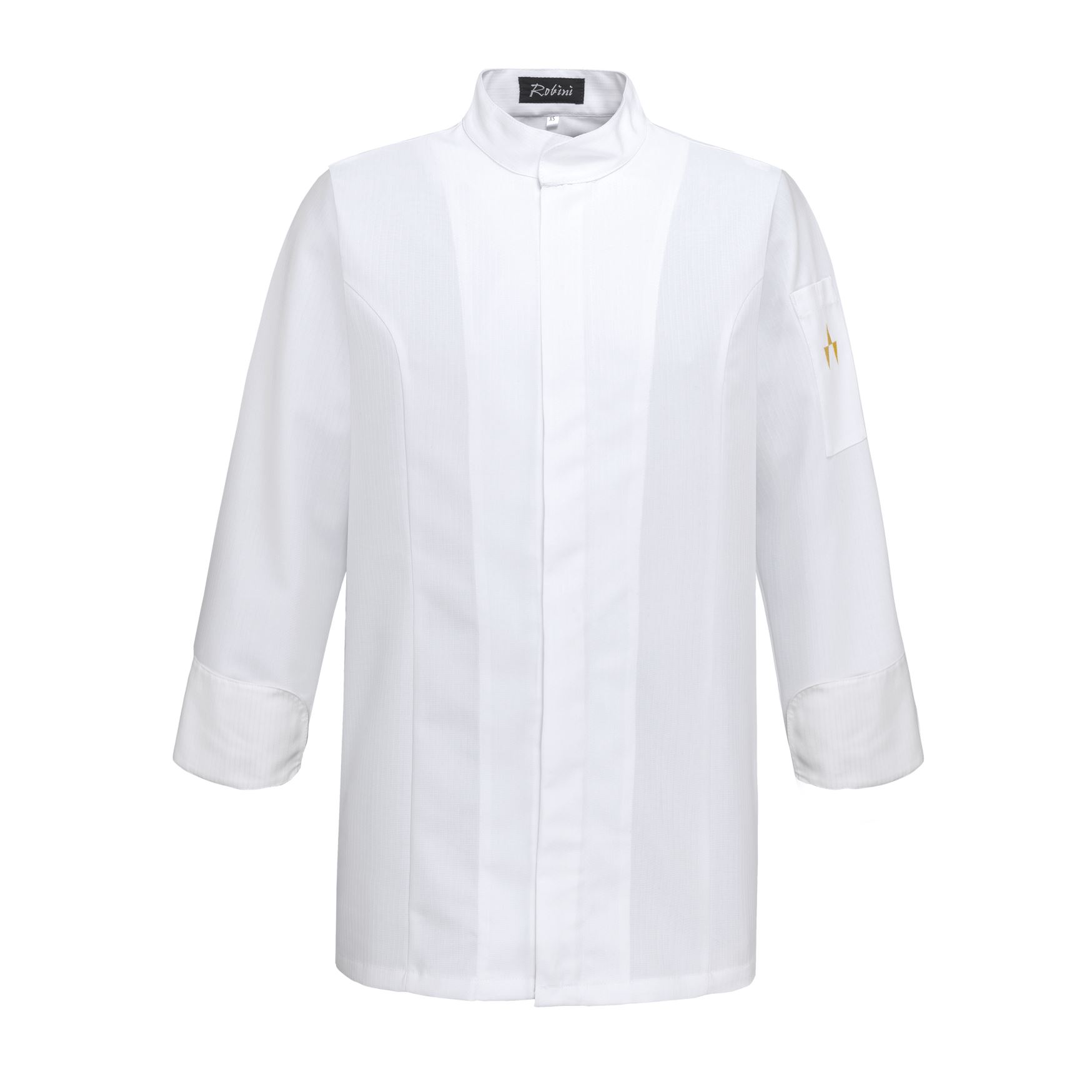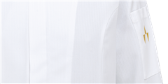 Veste de cuisinier avec fermeture au milleu, slimfit fermeture à glissière cachée, manches longues avec manchettes à revers et poche sur manche gauche. Réalisé en ton-sur-ton rayure.
