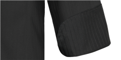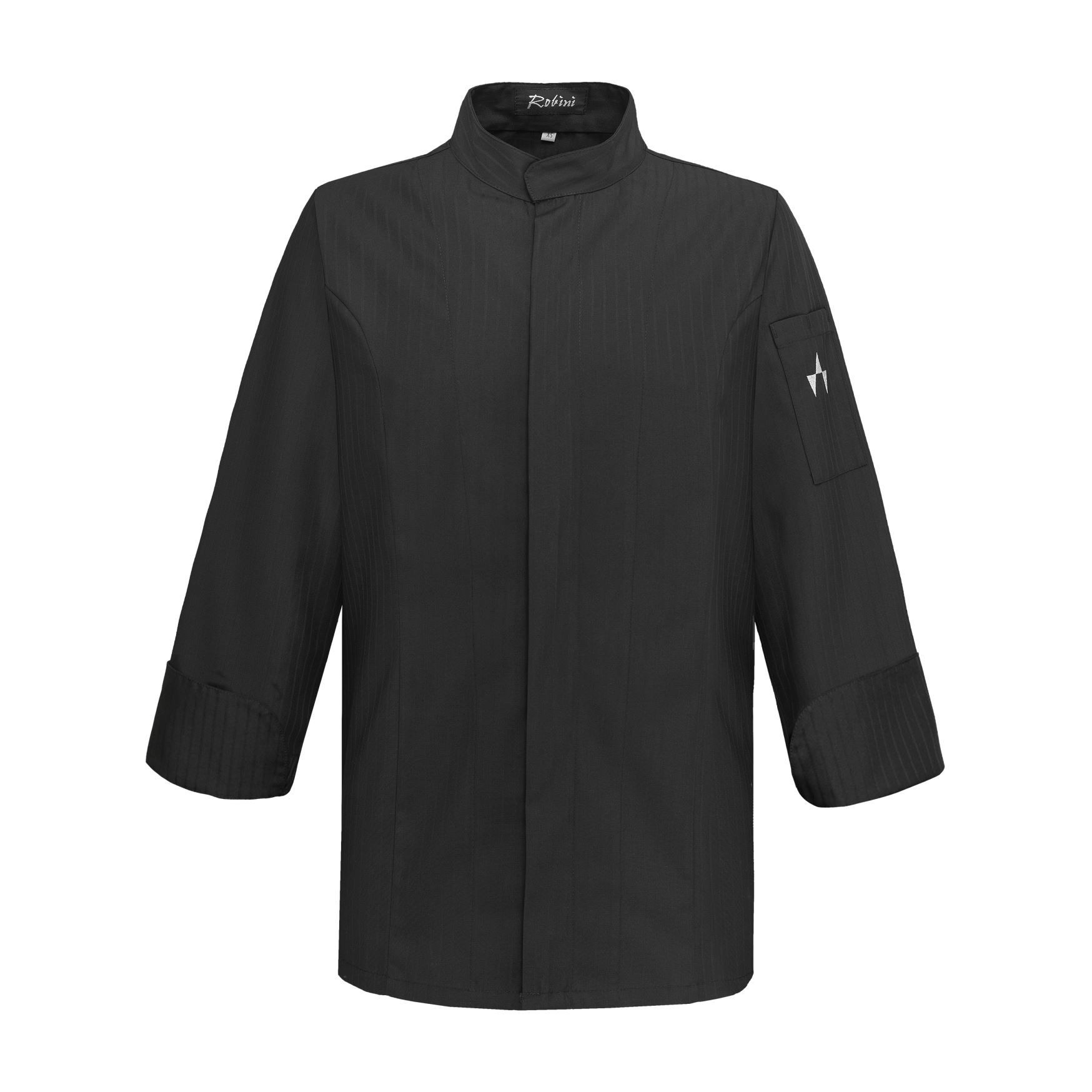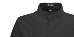 Veste de cuisinier avec fermeture au milleu, slimfit fermeture à glissière cachée, manches longues avec manchettes à revers et poche sur manche gauche. Réalisé en ton-sur-ton rayure.