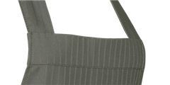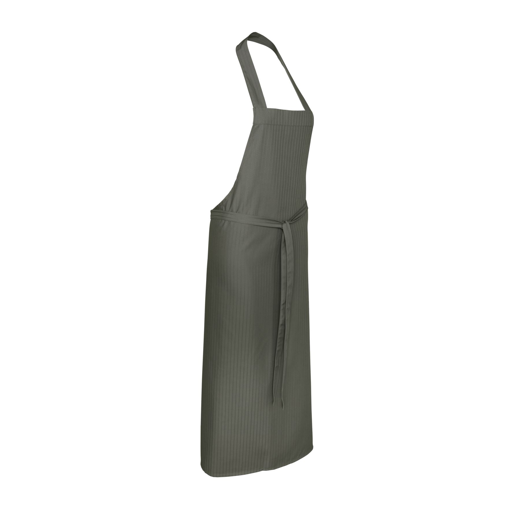 Tablier à bavette sans poches. Réalisé en ton-sur-ton rayure.